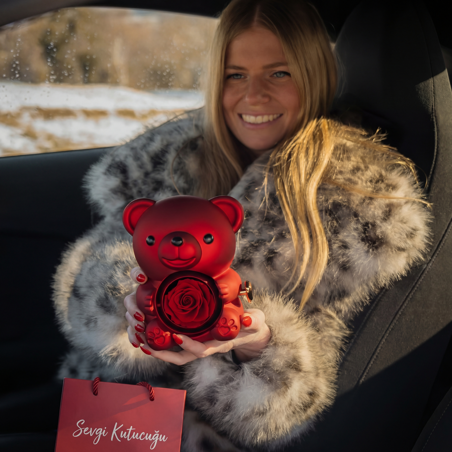 Sevimli ayıcık tasarımı ve göbeğindeki çiçek detayıyla ilk anda gülümsetir. Yanındaki aparatı çevirdiğinizde hediyenin ortaya çıkması ise sürpriz etkisi yaratır ve hediyenizi unutulmaz kılar. Hem duygusal hem de özel bir an yaşatmak isteyenler için ideal bir seçimdir.